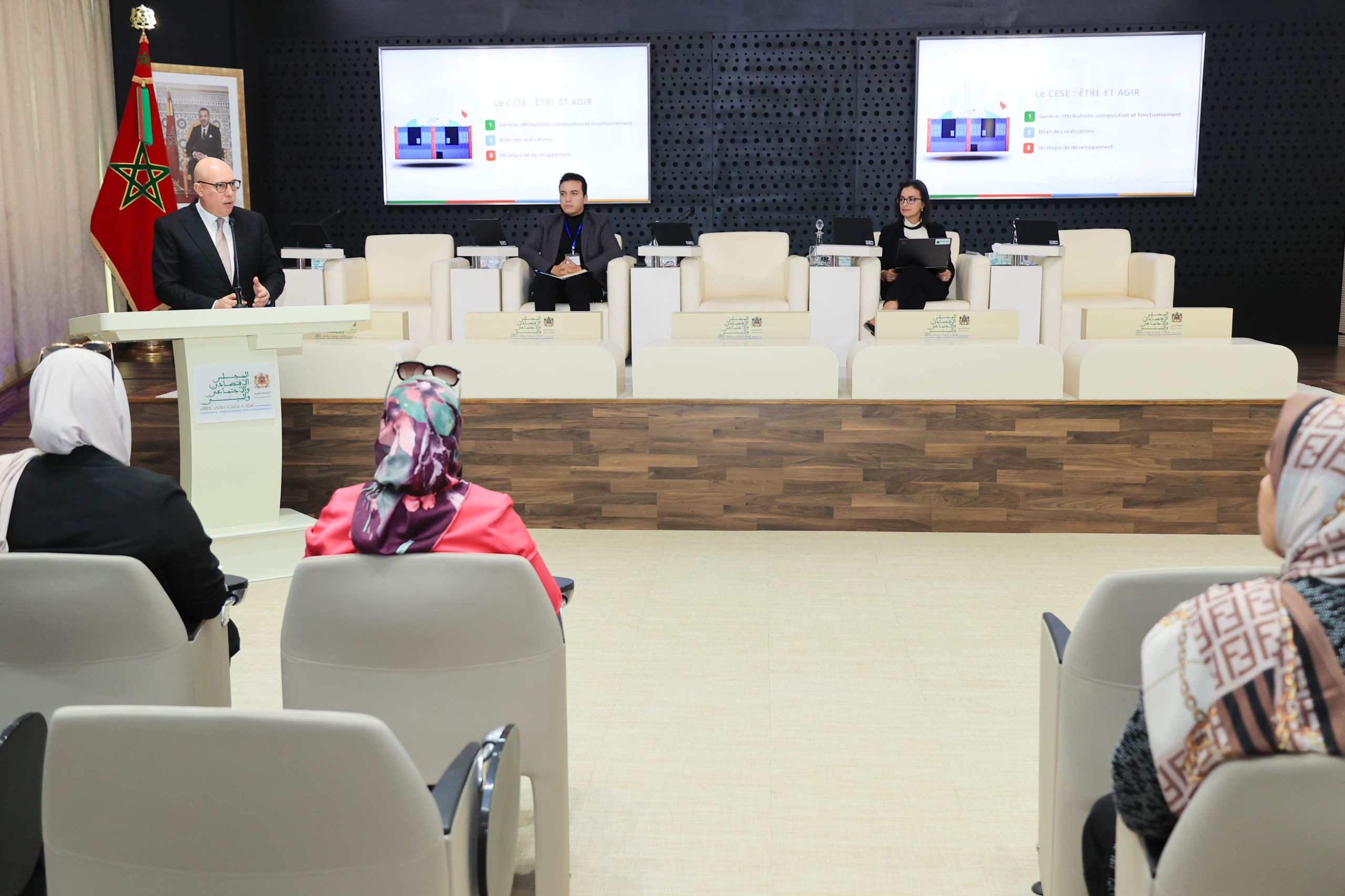 Au cours de cette rencontre, M. le Secrétaire général a présenté un exposé détaillé sur les missions du Conseil, son rôle consultatif, ainsi que sur ses modes de fonctionnement et sa méthodologie d’élaboration des avis et rapports qu’il produit, conformément aux attributions qui lui sont conférées par la Constitution du Royaume et la loi organique n°128.12 régissant le Conseil.