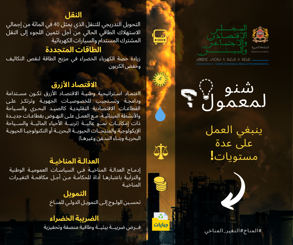 من اجل مواجهة تحديات التغيرات المناخية، ينبغي العمل على عدة مستويات: