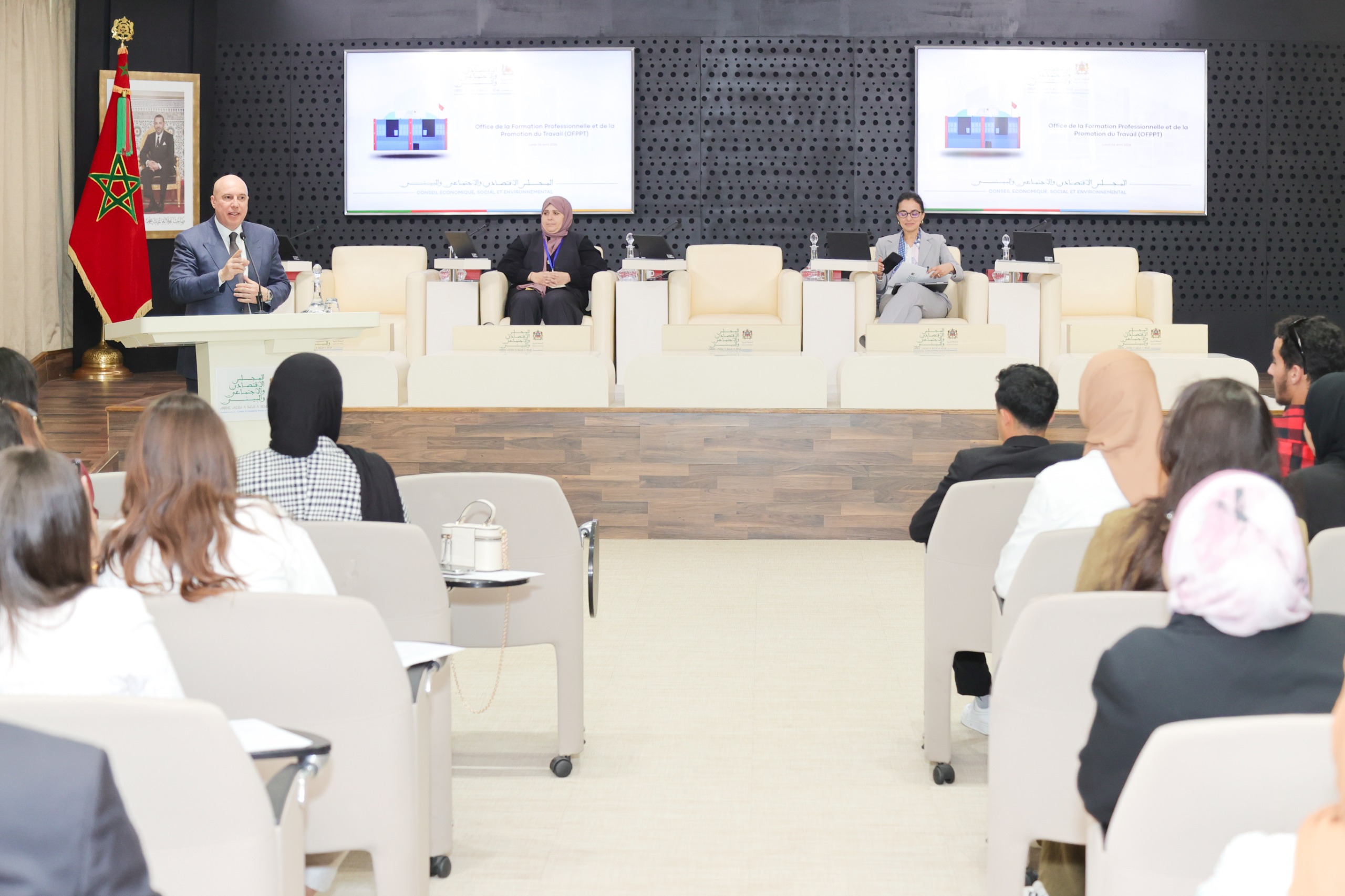 في إطار برنامجه التواصلي “الإثنين الشبابي”، استقبل المجلس الاقتصادي والاجتماعي والبيئي، يومه الإثنين 6 أبريل 2026، مجموعة من المتدربين من مدينة المهن والكفاءات بالرباط، التابعة لمكتب التكوين المهني وإنعاش الشغل، يمثلون عدّة مسارات وتخصصات تكوينية، لاسيما الذكاء الاصطناعي، والفلاحة الدقيقة، وتدبير المقاولات، والهندسة الصناعية، والكهرباء الصناعية، والتطوير الرقمي، وكذا مهن الفندقة والمطعمة.