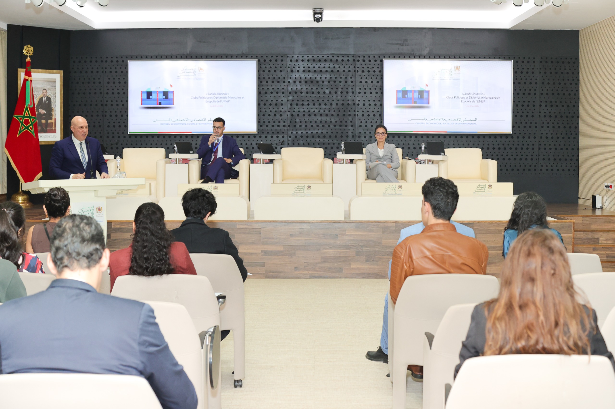 في إطار برنامجه التواصلي “الإثنين الشبابي”، استقبل المجلس الاقتصادي والاجتماعي والبيئي، يومه الإثنين 20 أبريل 2026، أعضاء نادي “السياسة والدبلوماسية المغربية (CPDM) “ونادي الاقتصاد “إيكوبوليس (EcoPolis) ” بكلية الحكامة والعلوم الاقتصادية والاجتماعية، التابعة لجامعة محمد السادس متعددة التخصصات التقنية.