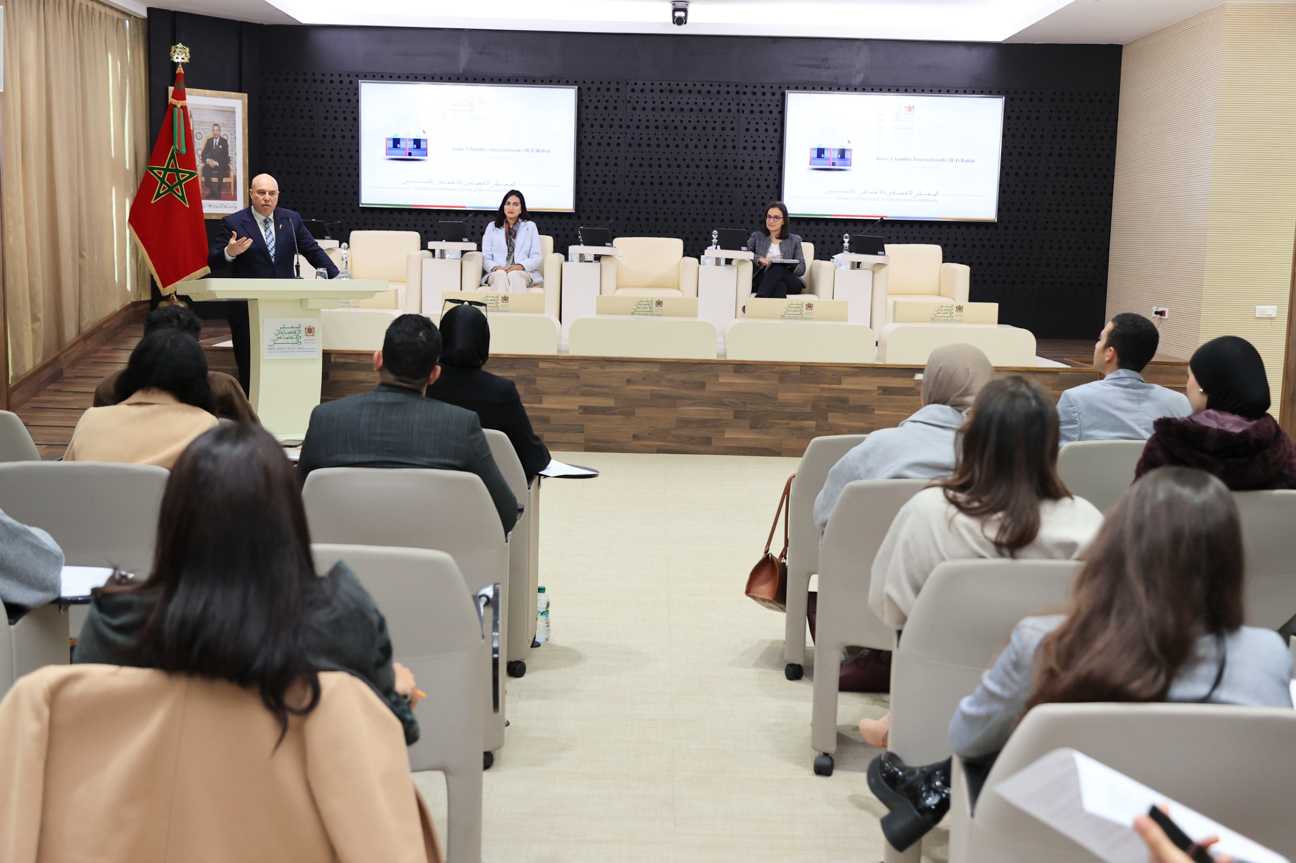 في إطار “الإثنين الشبابي” للمجلس الاقتصادي والاجتماعي والبيئي، تمّ، يوم الاثنين 22 دجنبر 2025، استقبال أعضاء من الغرفة الفتية الدولية (JCI)، فرع الرباط، التي تضم شبابا، من مهنيين وطلبة، ذوي تجربة جمعوية، ويسعون إلى استثمار طاقاتهم وكفاءاتهم بما يتيح لهم تحقيق الارتقاء الذاتي والمهني والمساهمة في التنمية المجتمعية.